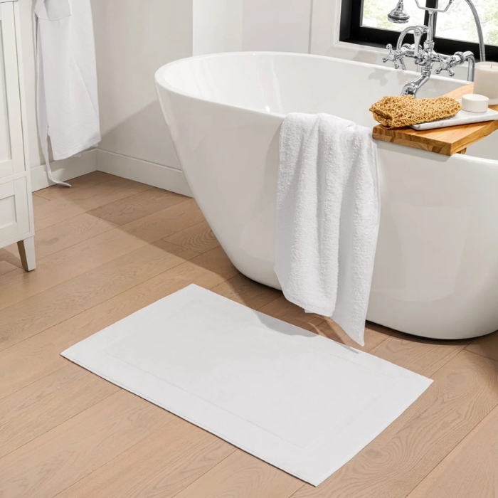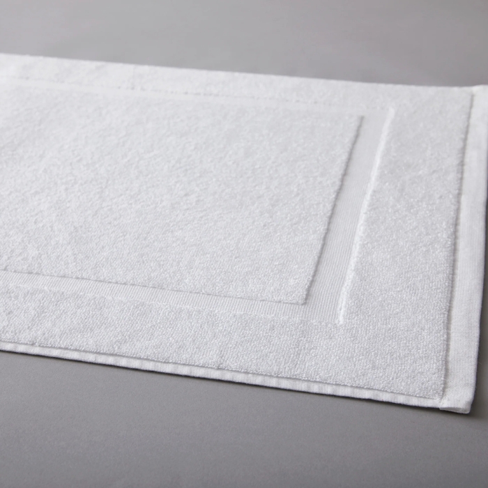 The Single Border Bath Mat is 100% cotton, super soft and lofty, extra absorbent and features a classic woven border details